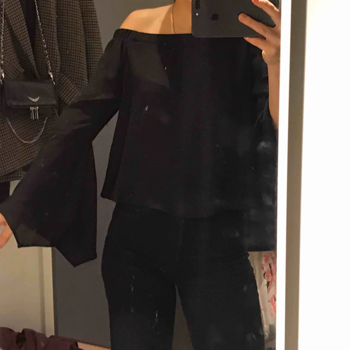 Off shoulder tröja köpt i London, superfin i tillfällen då man ska vara lite uppklädd eller till vardagen! Tröjan är i tunt tyg som blusar ofta är gjorda av.