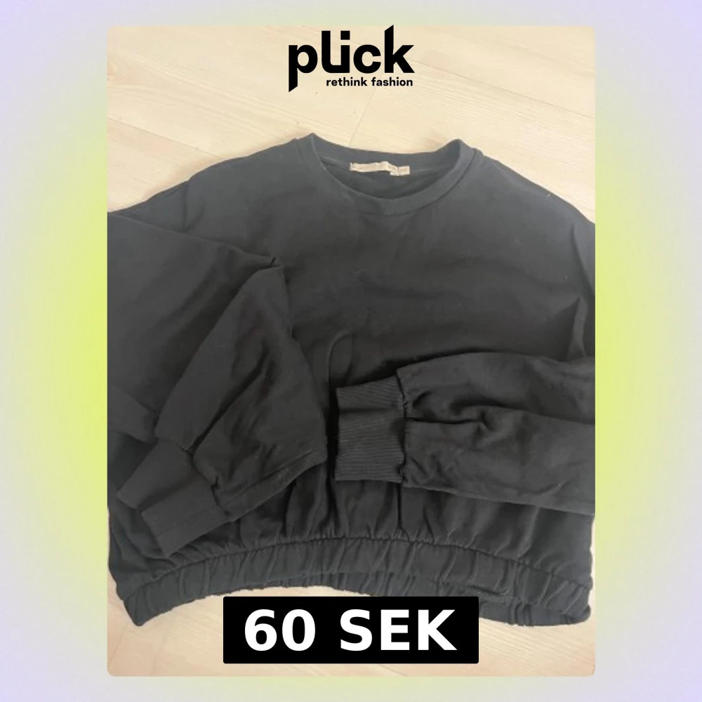 Svart croppad sweatshirt från NA-KD med rund hals och långa ärmar. Tröjan har breda muddar vid ärmslut och en resår i nederkant som ger en snygg, avslappnad siluett. Perfekt för en chill och trendig look.