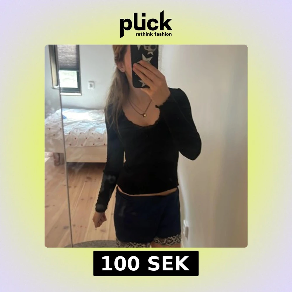 Supersnygg svart långärmad topp med v-ringning och spetsdetaljer vid halsen.