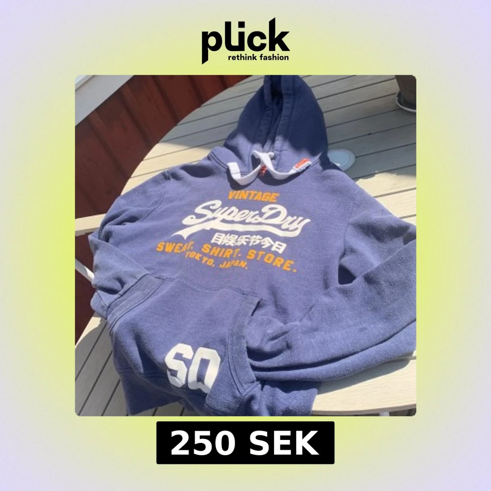 Blå hoodie från Superdry med stort vitt och gult tryck på bröstet och siffran 60 på ärmen. Klassisk huva med snörning och känguruficka framtill. Mjuk bomullsblandning, perfekt för chill dagar. Snygg streetstyle-vibe!