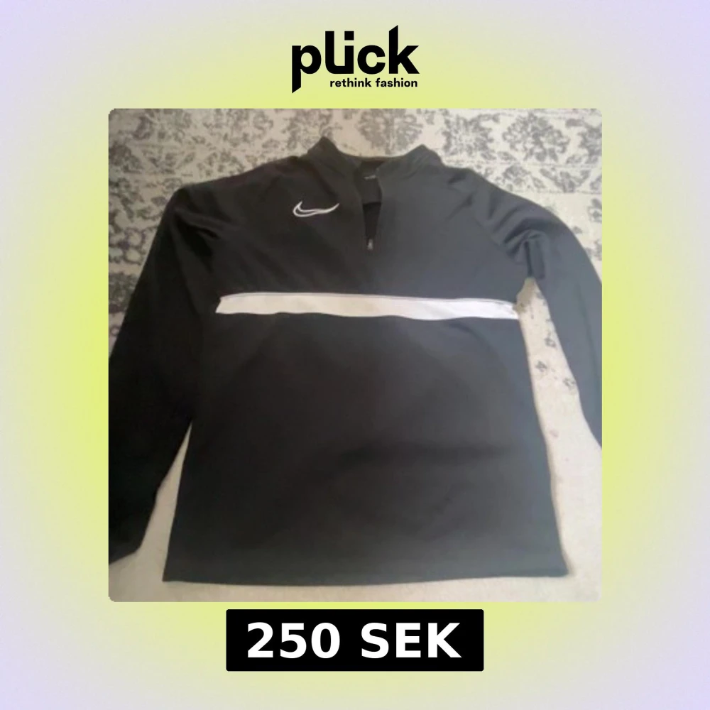 Svart långärmad tröja från Nike med vit logga på bröstet och en vit horisontell rand över magen. Tröjan har half zip framtill och är gjord i ett mjukt, sportigt material som passar perfekt till träning eller chill.