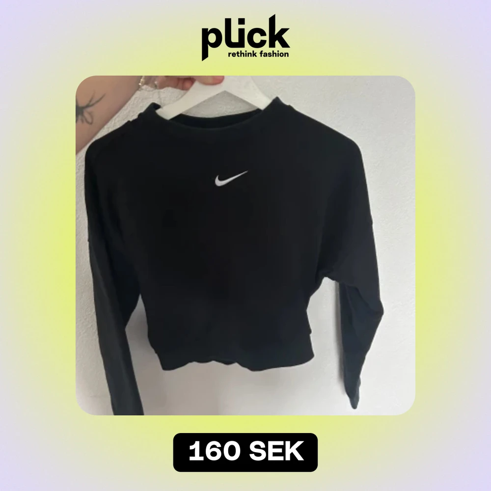 Säljer en svart croppad tröja från Nike. Den har en liten vit Nike-logga på framsidan och en öppen rygg. Tröjan är långärmad och perfekt för både träning och vardagsbruk. Den är i nyskick och väldigt bekväm att ha på sig. Passar perfekt till höst och vår!
