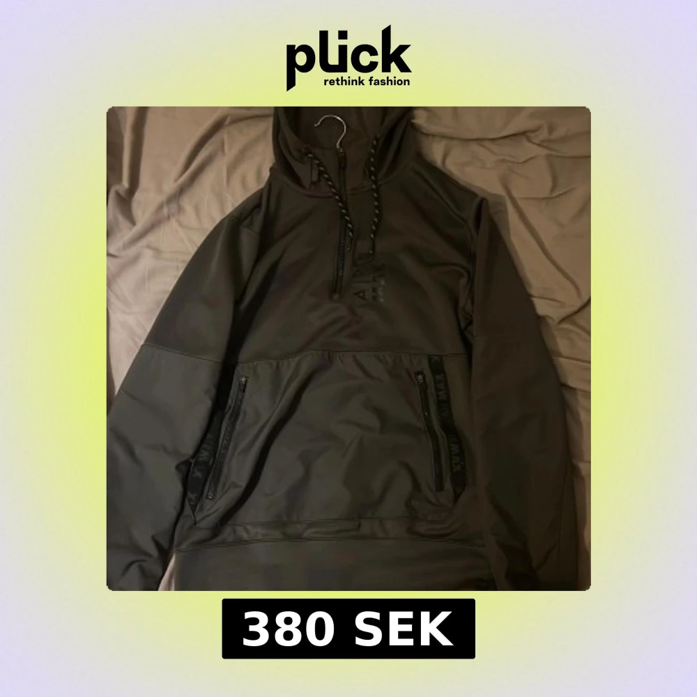 Svart Nike Air Max hoodie med halv dragkedja framtill och snörning i huvan. Stora fickor med dragkedja på magen och diskret Air Max-logga på bröstet. Tillverkad i mjukt syntetmaterial, perfekt för höst och vinter.
