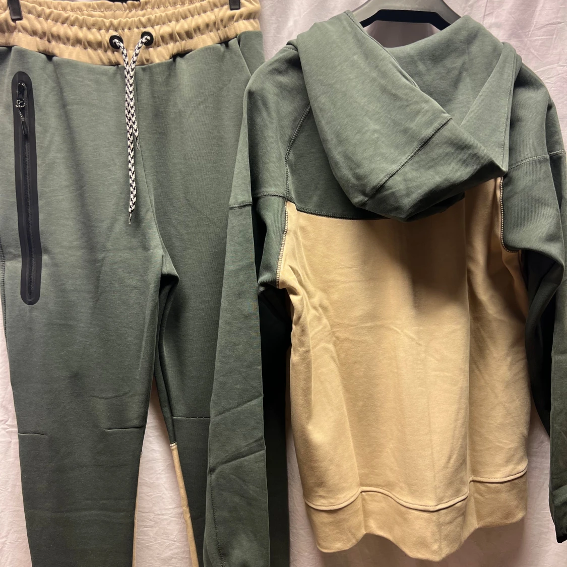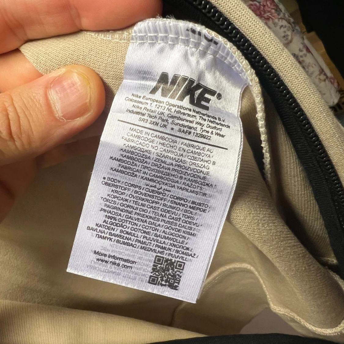 Nike hoodie i tvåfärgad design med grön ovandel och beige nedre del. Tröjan har huva, dragkedja framtill och svarta detaljer på fickorna. Tillverkad i mjuk bomullsblandning, perfekt för chill eller träning. Klassisk Nike-logga på bröstet och sportig look.