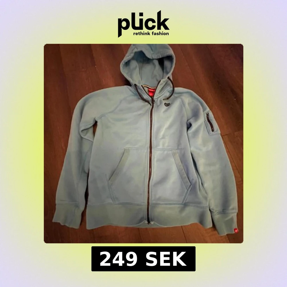 Nike hoodie i ljusblått med hel dragkedja och huva. Tröjan har fickor framtill, en extra ficka med dragkedja på ärmen och klassisk Nike-logga på bröstet. Perfekt för chill eller träning, mjukt material och relaxed fit.