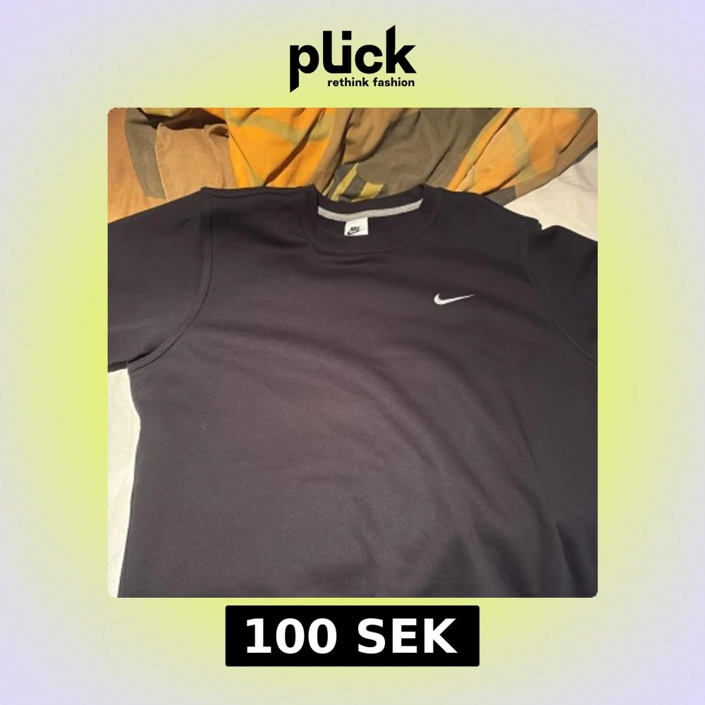 Säljer en stilren svart tröja från Nike med deras ikoniska logga på bröstet. Tröjan har en klassisk passform och är perfekt för en avslappnad look. Tillverkad i ett mjukt material för extra komfort.
