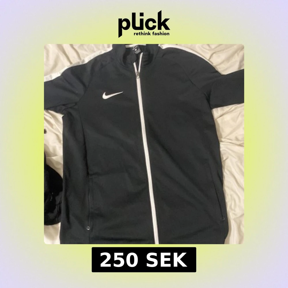Svart Nike kofta med vit dragkedja och vit logga på bröstet. Koftan har vita detaljer längs axlarna, sidofickor med dragkedja och är tillverkad i Dri-Fit polyester som andas. Perfekt för träning och chill. Långärmad och normal passform.