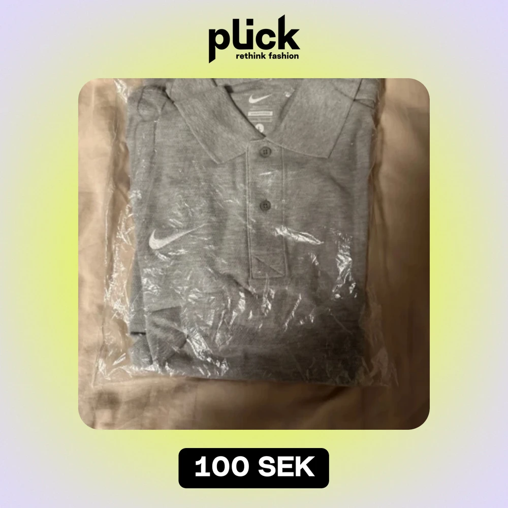Säljer en snygg och stilren grå pikétröja från Nike. Perfekt för både vardag och träning. Tröjan har en klassisk krage och knappar framtill. Den är helt ny och ligger fortfarande i förpackningen. Passar perfekt för en sportig look! Storlek L passar M