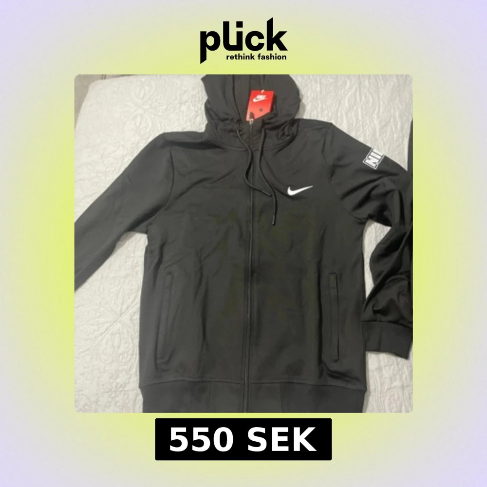 Svart hoodie från Nike med vit logga på bröstet och patch på ärmen. Tröjan har huva med snörning, hel dragkedja och två fickor framtill. Perfekt för dig som gillar sportig och clean stil.