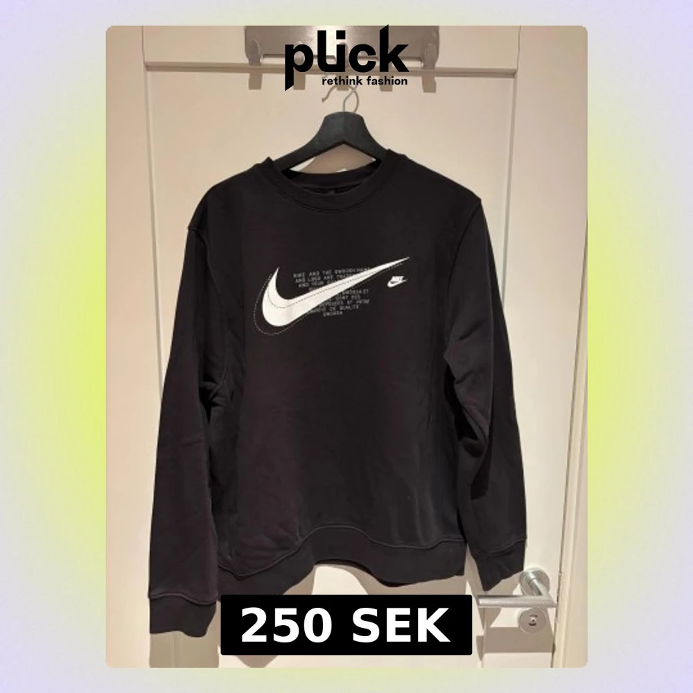 Svart sweatshirt från Nike i storlek M med stor vit Swoosh-logga och text på bröstet. Tröjan har används ett fåtal gånger, men är annars i ny skick.
