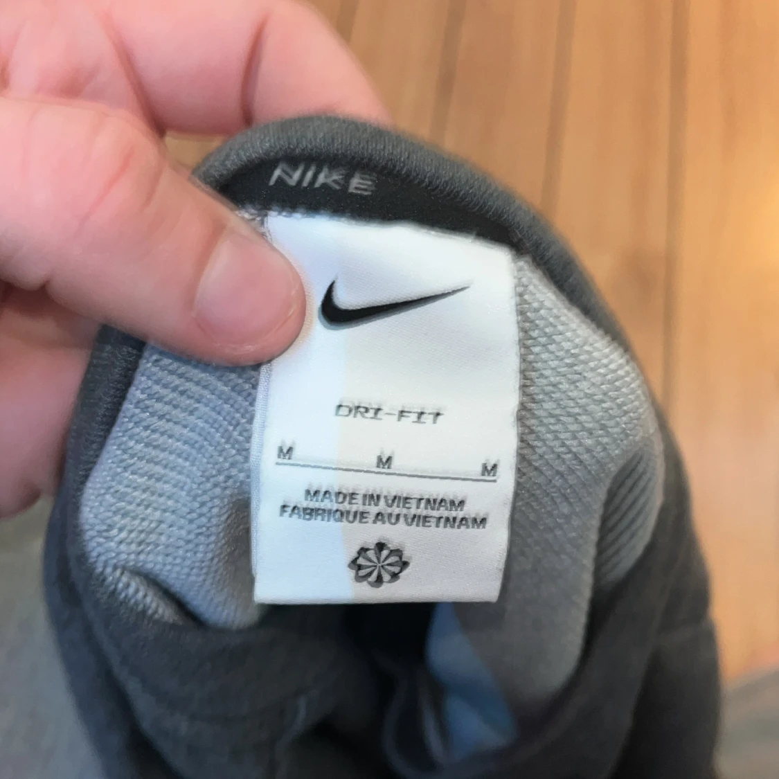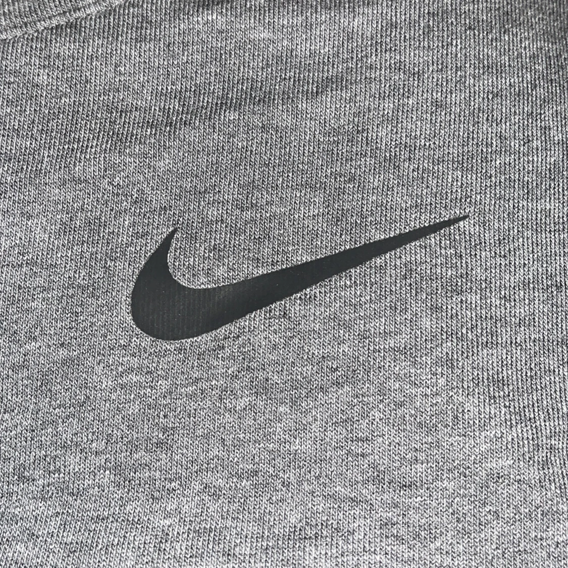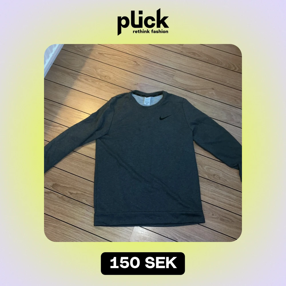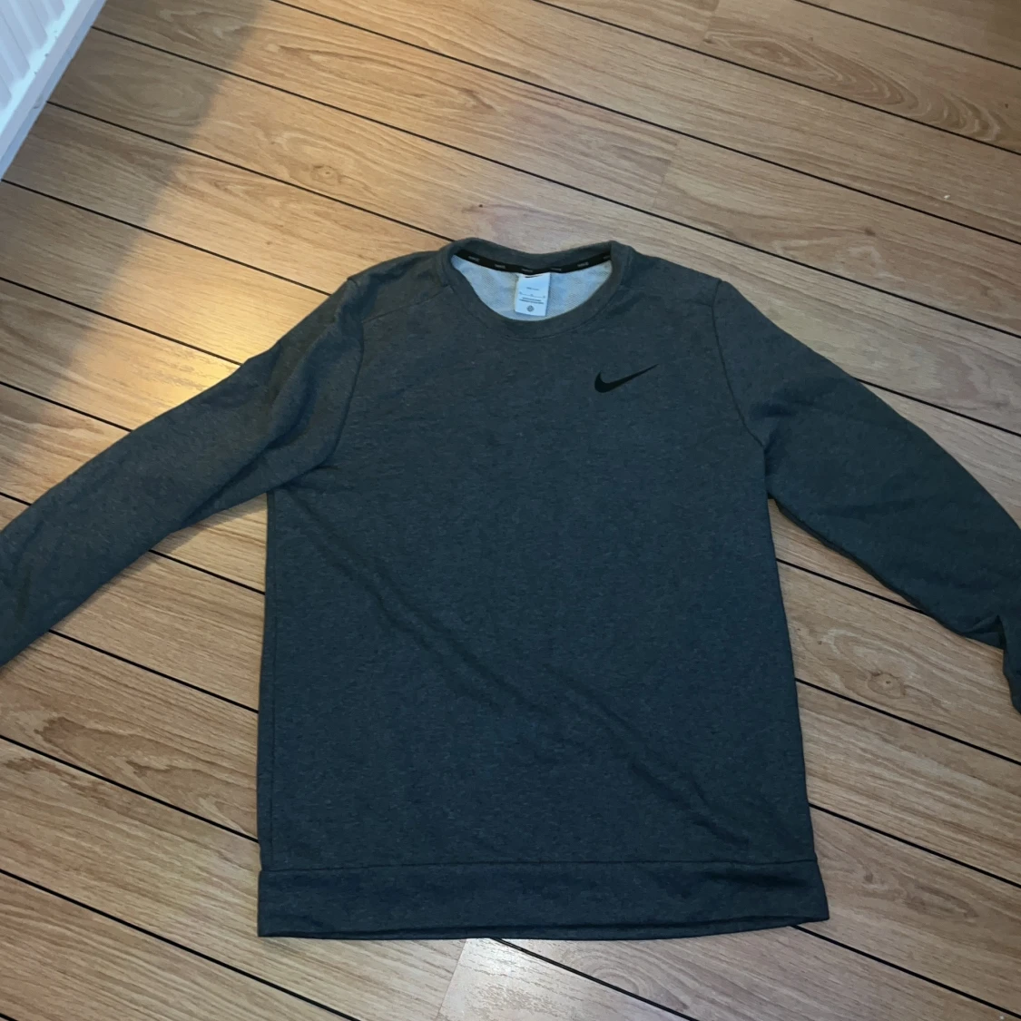 Säljer en grå långärmad tröja från Nike i Dri-Fit material. Perfekt för träning eller vardagsbruk. Tröjan är i bra skick och har en enkel design med Nike-loggan på bröstet. Skön och funktionell för alla tillfällen!