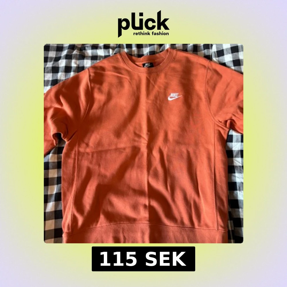 Säljer en snygg orange sweatshirt från Nike i storlek M. Tröjan har en klassisk rund halsringning och Nike-logga broderad i vitt på bröstet. Tillverkad i mjuk bomullsmix och har långa ärmar. Perfekt för en chill och sportig look.