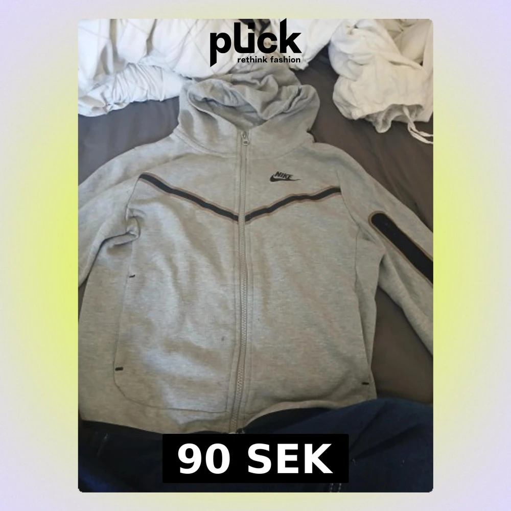 Snygg grå hoodie från Nike i storlek M, med hel dragkedja framtill och huva. Tröjan har svarta och bruna detaljer längs bröstet och på ena ärmen, samt Nike-logga på vänster sida. Perfekt för chill eller träning.