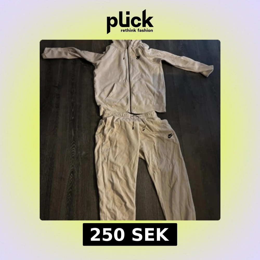 Säljer en beige sätt från Nike med dragkedja framtill och huva med snörning. Tröjan har långa ärmar och två fickor på magen. Perfekt för chill dagar eller när du vill vara extra bekväm.