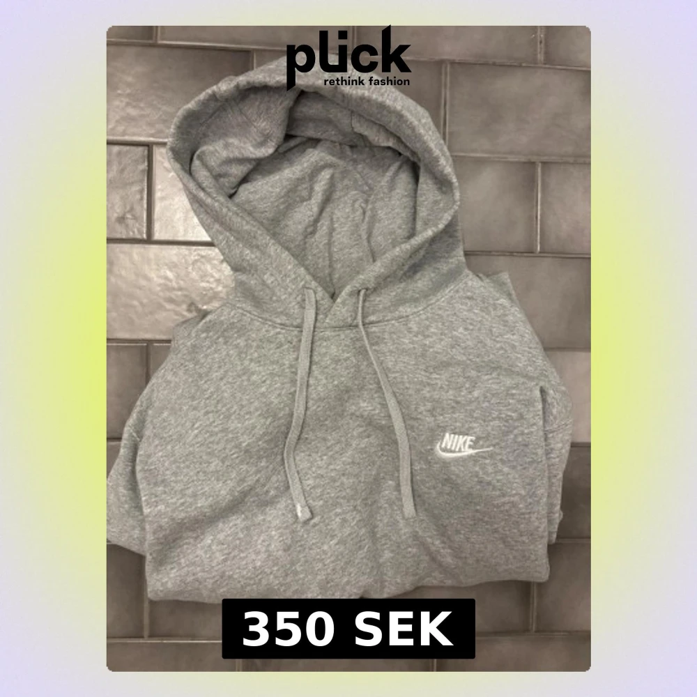 Säljer en grå hoodie från Nike med klassisk logga broderad i vitt på bröstet. Tröjan har huva med snörning och en avslappnad passform. Perfekt för chill dagar eller när du vill ha en enkel och snygg look.