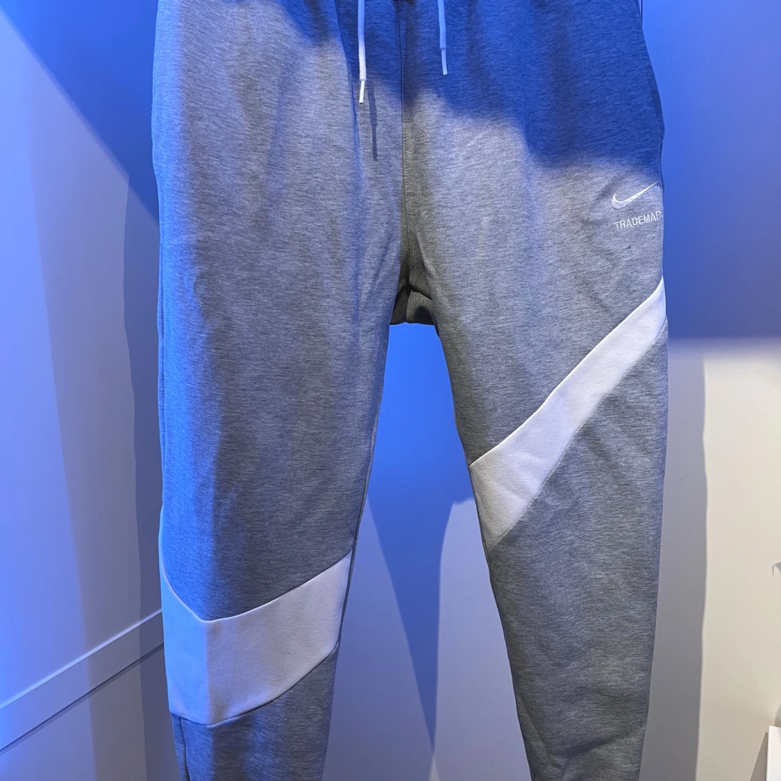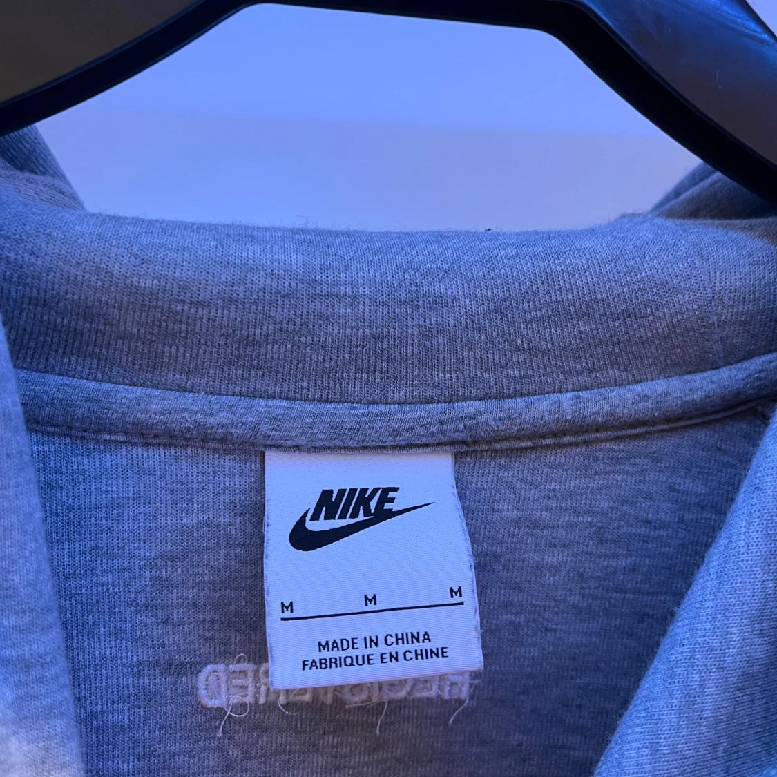 Snygg grå hoodie från Nike med stor vit swoosh som går runt hela tröjan. Tröjan har huva med snörning och långa ärmar. Tillverkad i mjuk bomullsblandning, perfekt för chill eller streetwear. Klassisk och stilren design med broderad text på ryggen.
