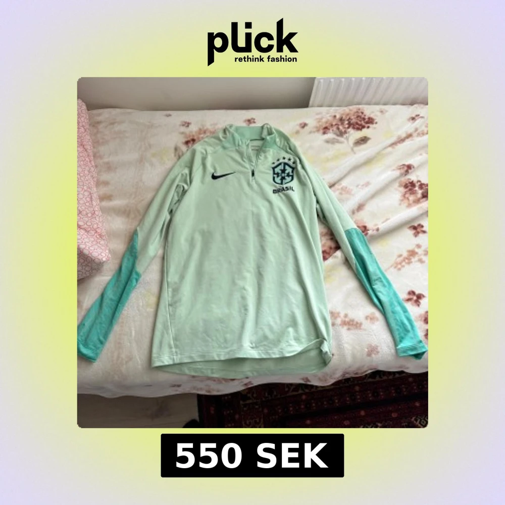 Kan mötas i malmö och frakta. Mintgrön långärmad träningströja från Nike med Brasil-logga och mörkare gröna detaljer på ärmarna. Tröjan har half zip, slim fit och är tillverkad i Dri-FIT-material.