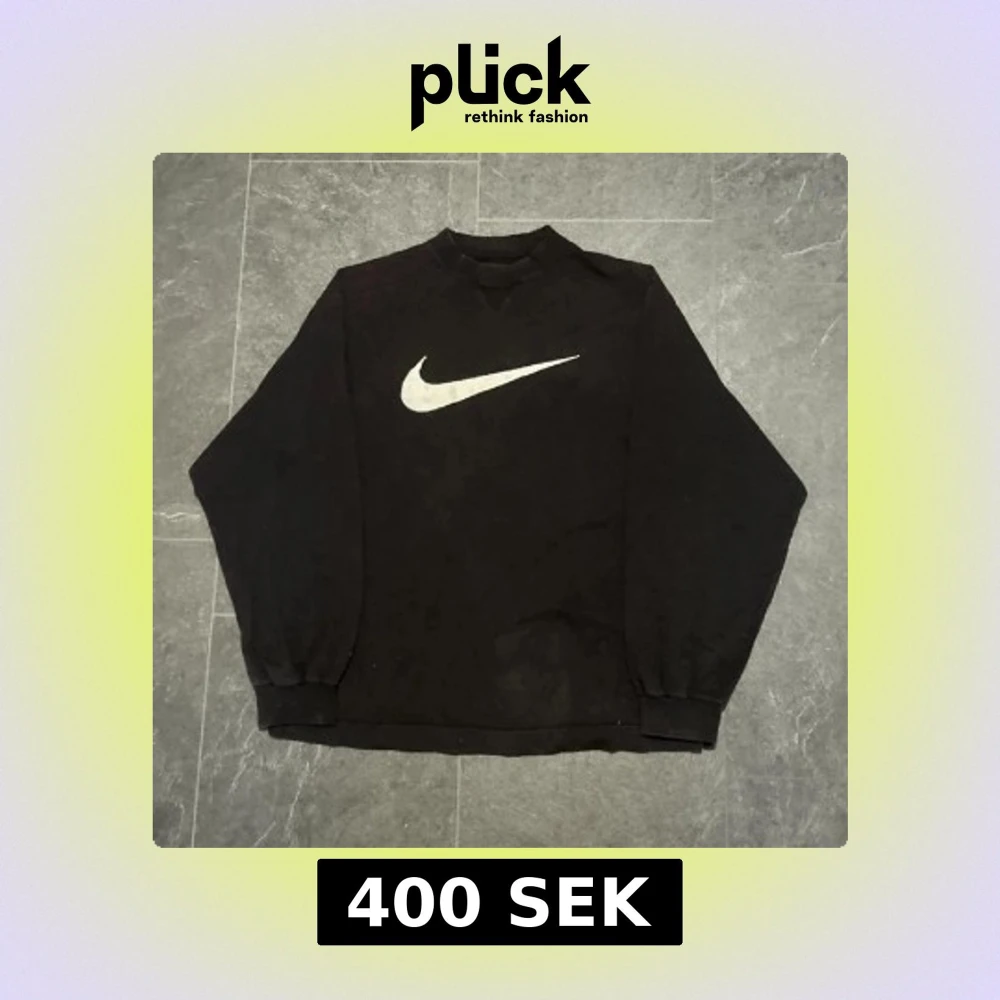 Säljer en svart tröja från Nike med det ikoniska swoosh-logotypen i vitt på framsidan. Tröjan har långa ärmar och en rund halsringning. Perfekt för en sportig och avslappnad stil.