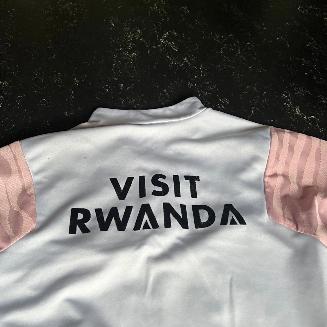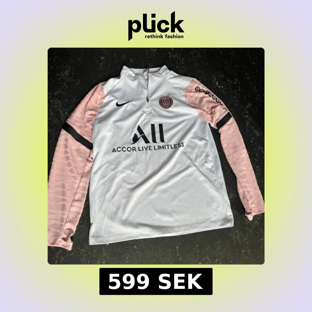 Snygg PSG fotbollströja från Nike med vit kropp och ljusrosa långärmade ärmar. Halv dragkedja framtill, svarta detaljer och klubbmärke på bröstet. Tillverkad i lätt och ventilerande funktionsmaterial, perfekt för träning eller match. M och passar S också , skriv för mer info!
