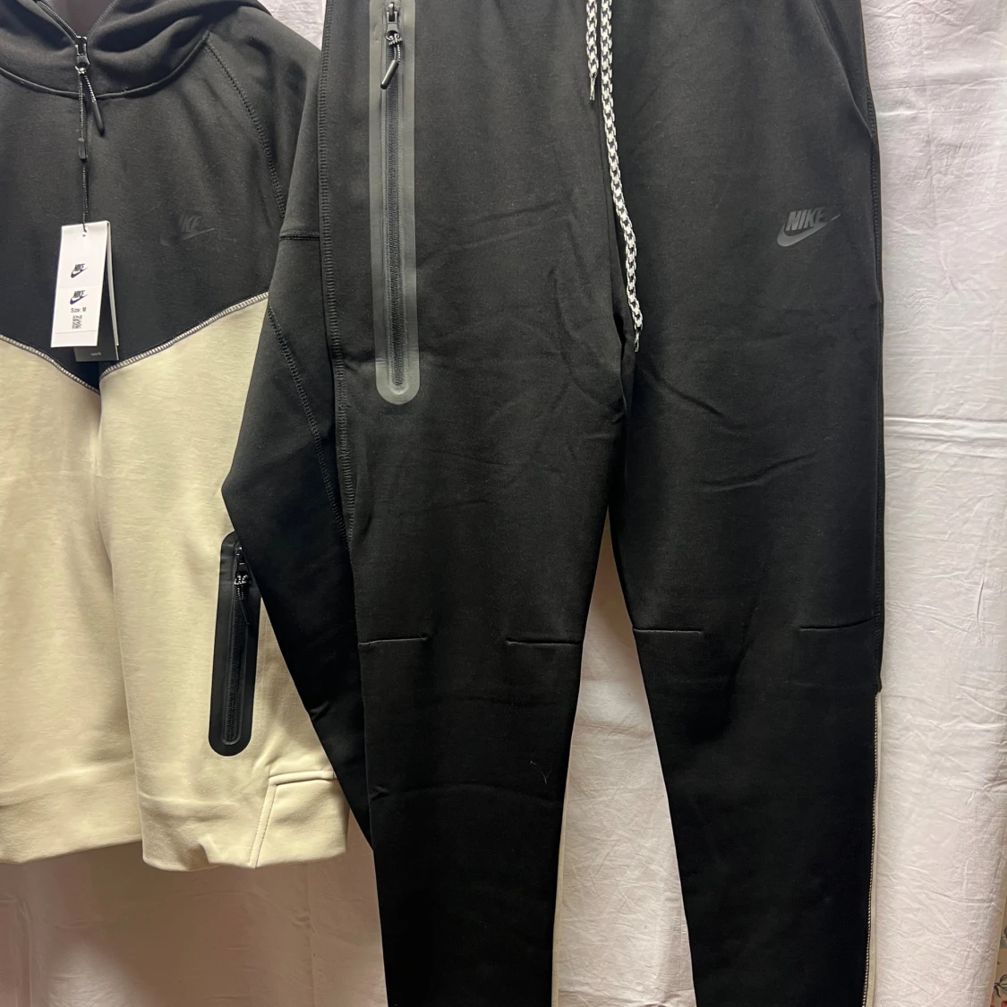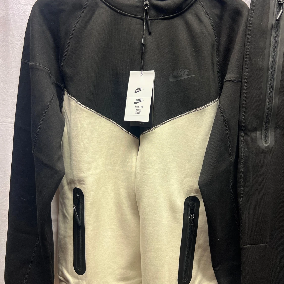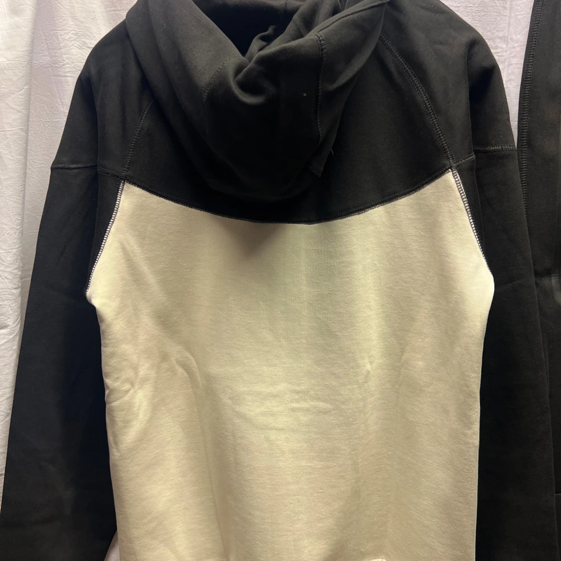 Nike hoodie i svart och beige med dragkedjor på fickorna och snygg tvåfärgad design. Tröjan har huva, långa ärmar och sportig look. Perfekt för dig som gillar streetwear och vill ha något bekvämt och stilrent.