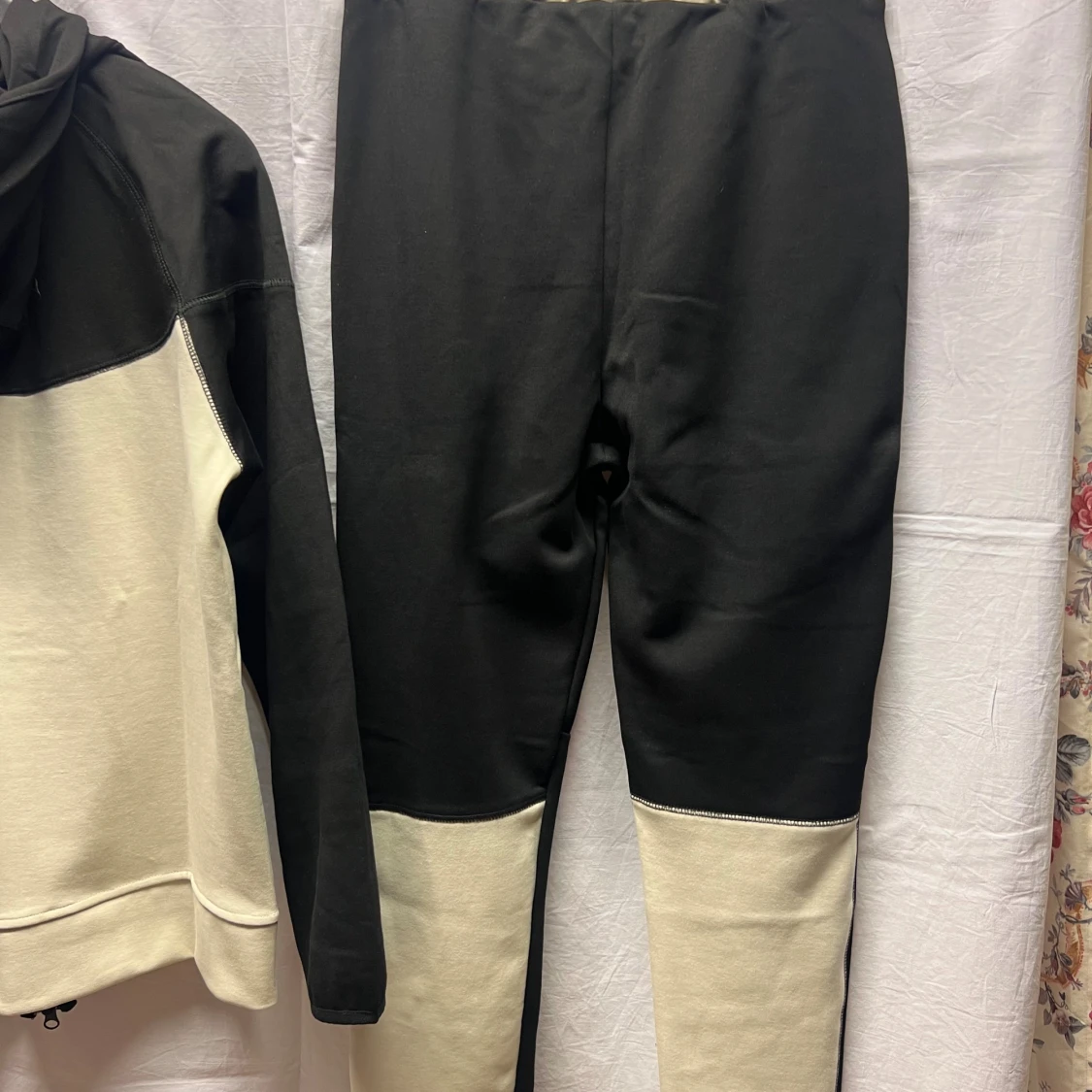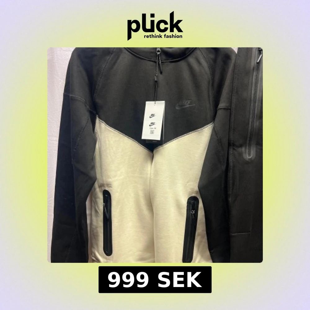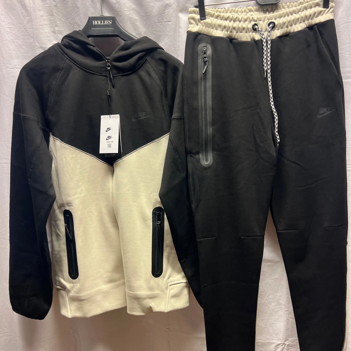 Nike hoodie i svart och beige med dragkedjor på fickorna och snygg tvåfärgad design. Tröjan har huva, långa ärmar och sportig look. Perfekt för dig som gillar streetwear och vill ha något bekvämt och stilrent.
