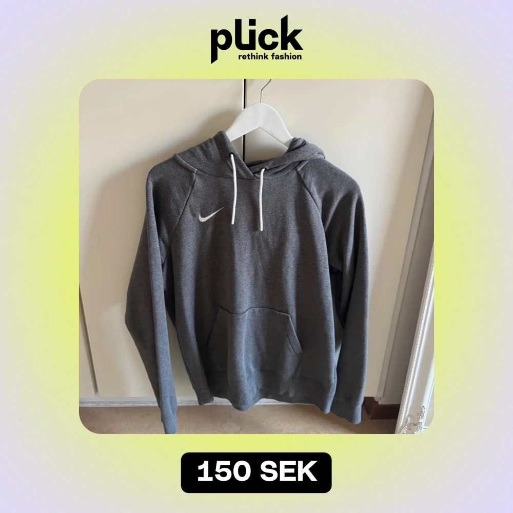 Säljer en snygg och bekväm grå hoodie från Nike. Den har en klassisk design med en vit Nike-logga på bröstet och en praktisk magficka. Perfekt för både vardag och träning. Huvan har justerbara snören för bästa passform. Passar perfekt till höst och vår!
