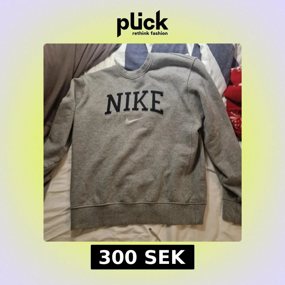 Klassisk grå sweatshirt från Nike med stor svart logga och broderad swoosh på bröstet. Tröjan har rund halsringning, ribbade muddar och är tillverkad i mjuk bomullsblandning. Perfekt för en avslappnad och sportig stil.