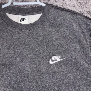 Säljer en grå sweatshirt från Nike med deras logga broderad på bröstet. Oanvänd, mycket skön, i storlek M för en billig peng!