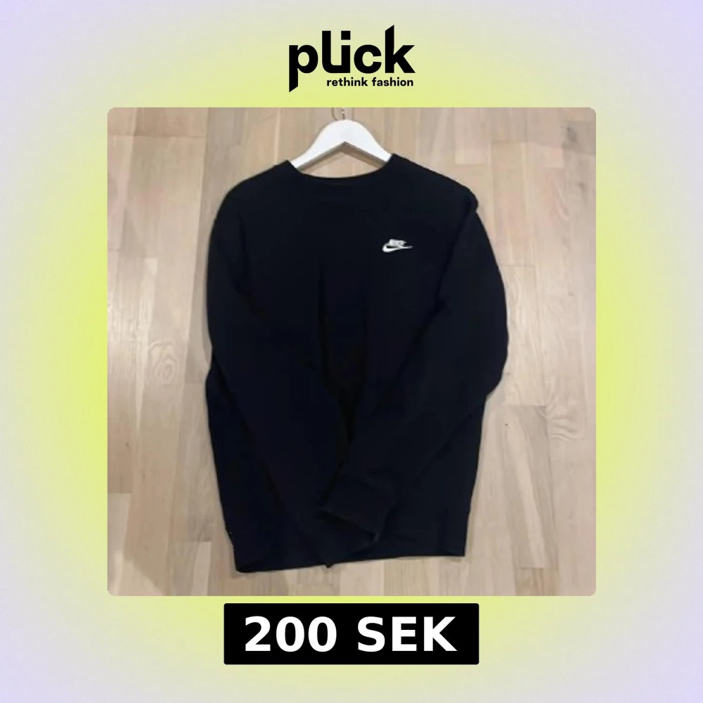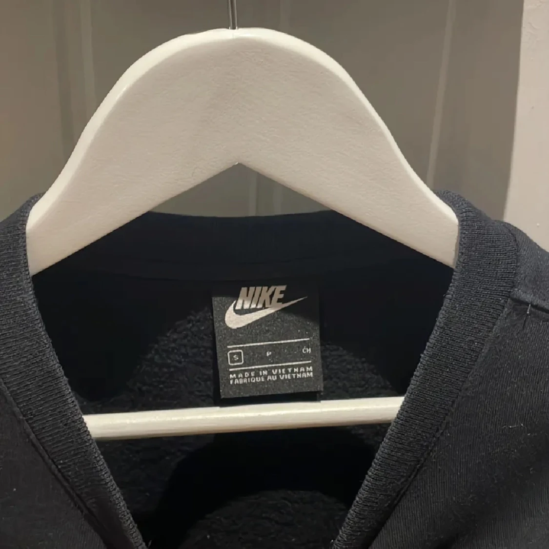 Säljer en stilren svart tröja från Nike med deras fina logga på bröstet. Tröjan har långa ärmar och en klassisk rund halsringning. Perfekt för en avslappnad look. Perfekt skick och väldigt skön