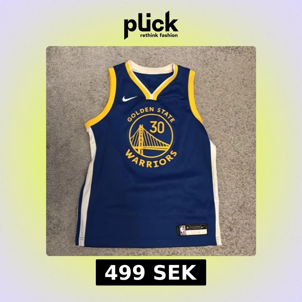 Golden State Warriors basketlinne med Curry 30-tryck, blå med gula och vita detaljer. Tillverkad i Nike Dri-FIT material som andas, perfekt för basket eller sport. Klassisk NBA-design med logga framtill och namn/nummer på ryggen.