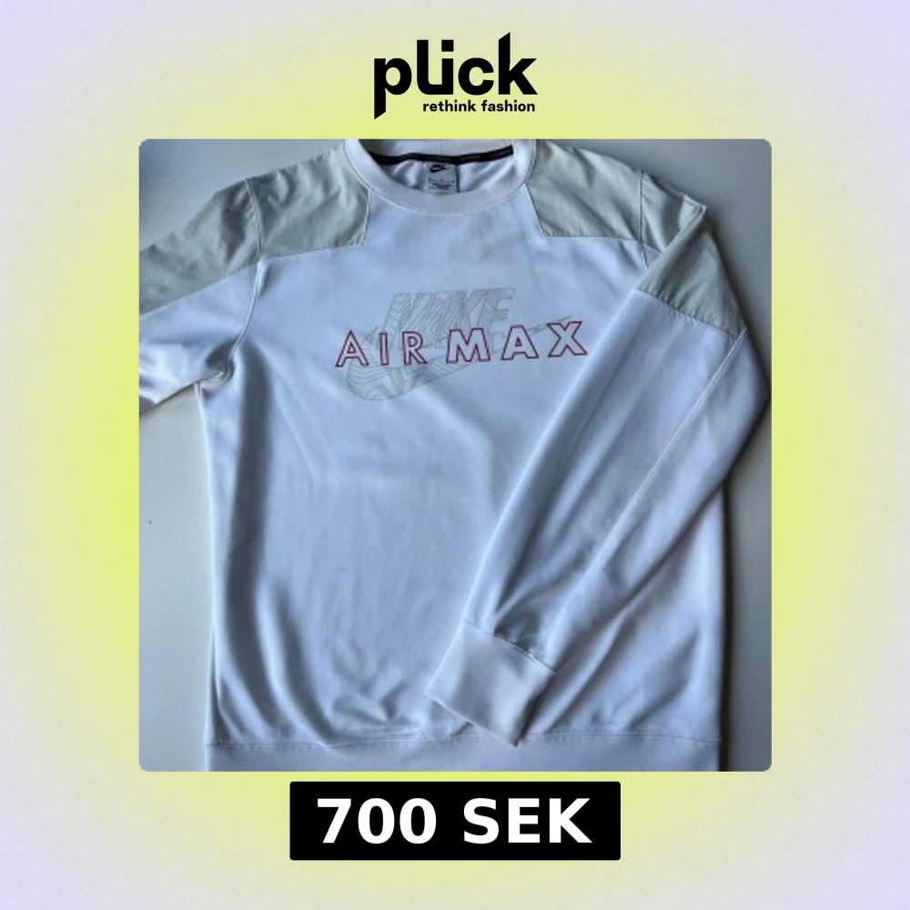 Nike Air Max sweatshirt i vitt med ljusgrå axelpartier och röd logga framtill och baktill. Tröjan har lång ärm, rund hals och tryckt Air Max-design på bröstet. Perfekt för dig som gillar sportig och clean stil. Materialet är mjukt och skönt bomullsmix.
