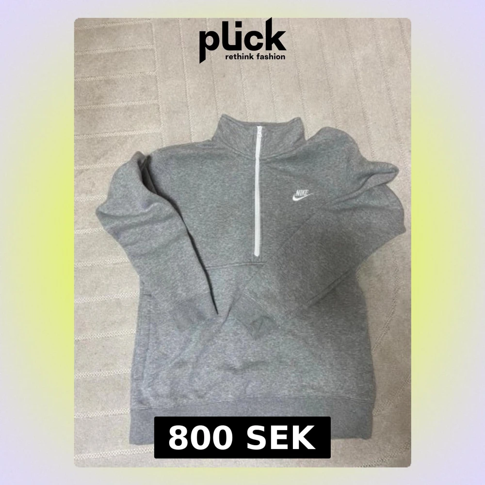 Säljer en grå hoodie från Nike i storlek M. Tröjan har en vit half zip-dragkedja framtill, hög krage och klassisk Nike-logga på bröstet. Tillverkad i mjuk bomullsblandning med långärmad passform och ribbade muddar. Perfekt för chill dagar eller träning. 100% äkta från Zalando.