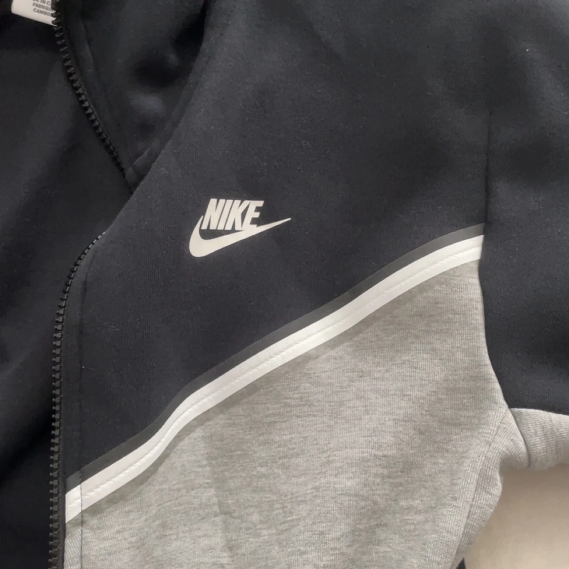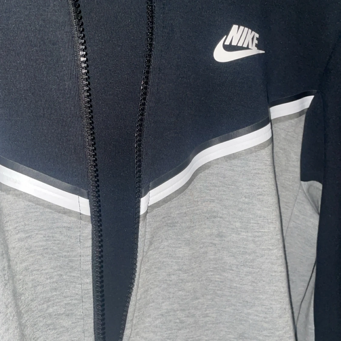 Nike tech fleece zip tröja, grå svart. Använd fåtal gånger så är som nyskick. Finns inga skavanker på den så den är som ny!😀