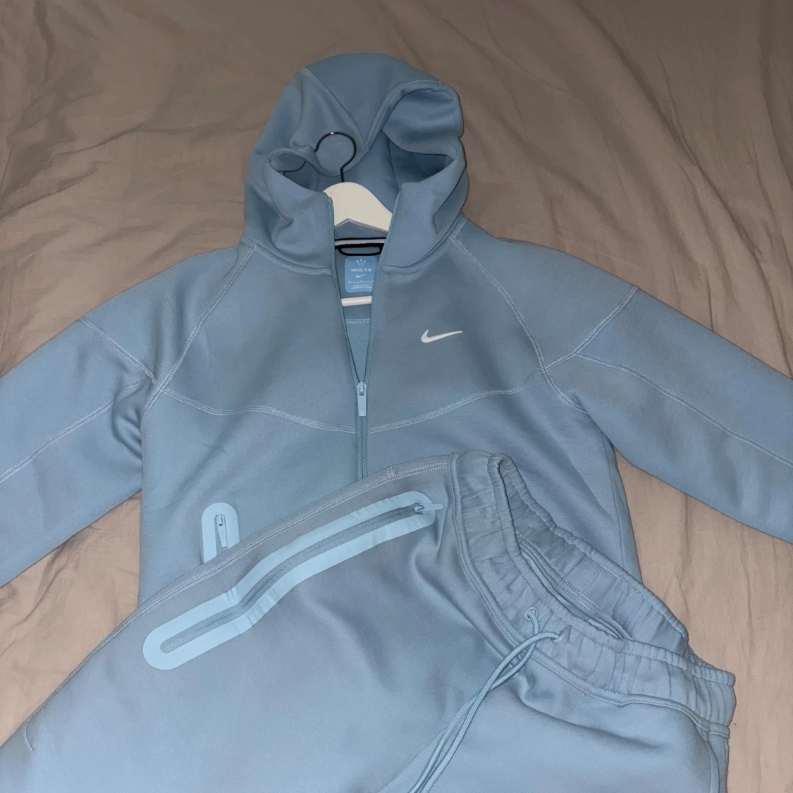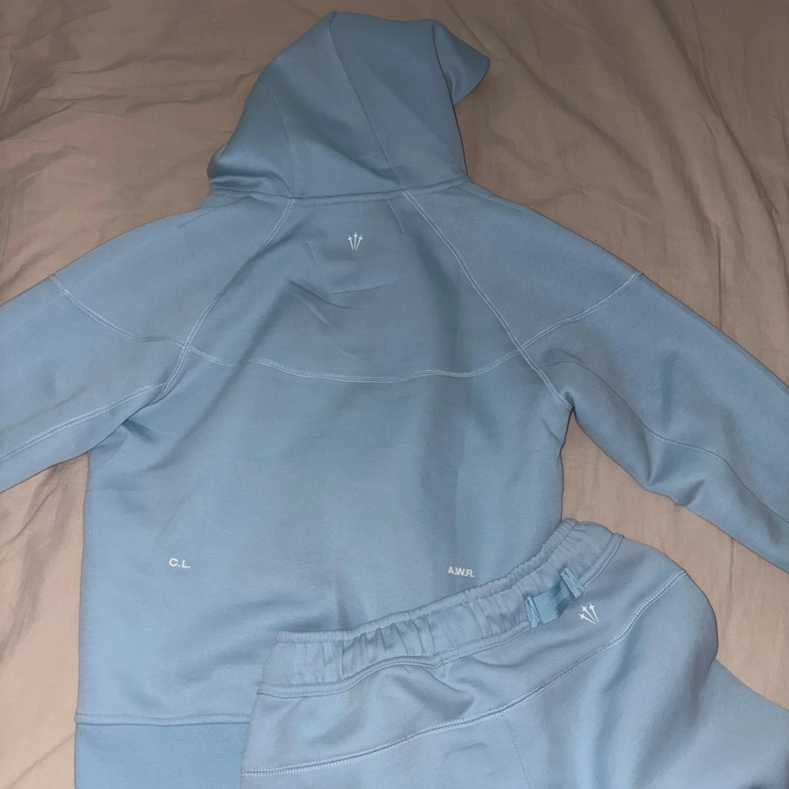 Snygg ljusblå hoodie från Nike NOCTA med huva och dragkedja framtill. Tröjan har vita logodetaljer på bröstet och ryggen, samt stilrena sömmar som ger en sportig vibe. Perfekt för chill eller träning, och matchar lätt med andra plagg.