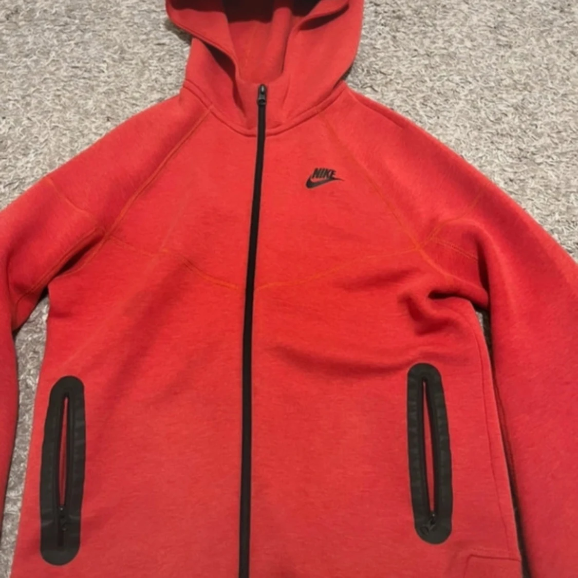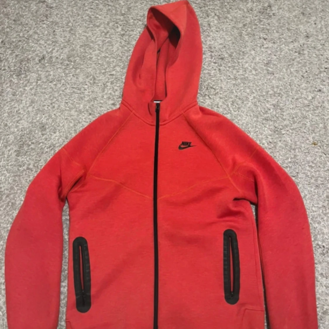 Nike hoodie i rött med svart logga på bröstet och hel dragkedja framtill. Tröjan har huva, långa ärmar och två svarta fickor med dragkedja. Perfekt för dig som gillar sportig och stilren look.