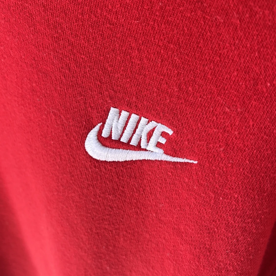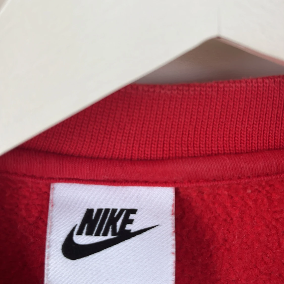 Röd sweatshirt från Nike med klassisk broderad vit logga på bröstet. Tröjan har rund halsringning, långa ärmar och är tillverkad i mjuk bomullsmix. Perfekt för en sportig och avslappnad stil.