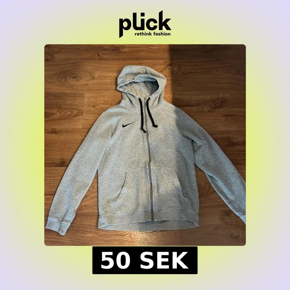 Grå zipup från Nike, lite slitningar på ärmarna (bild 3 & 4) men annars helt okej skick. Storlek s 😊