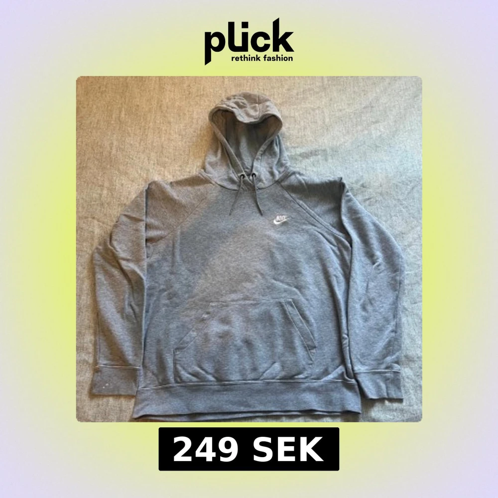 Säljer en klassisk grå hoodie från Nike med vit logga på bröstet. Perfekt för chill dagar eller när du vill ha en enkel och stilren look. Vid snabb affär kan priset diskuteras!