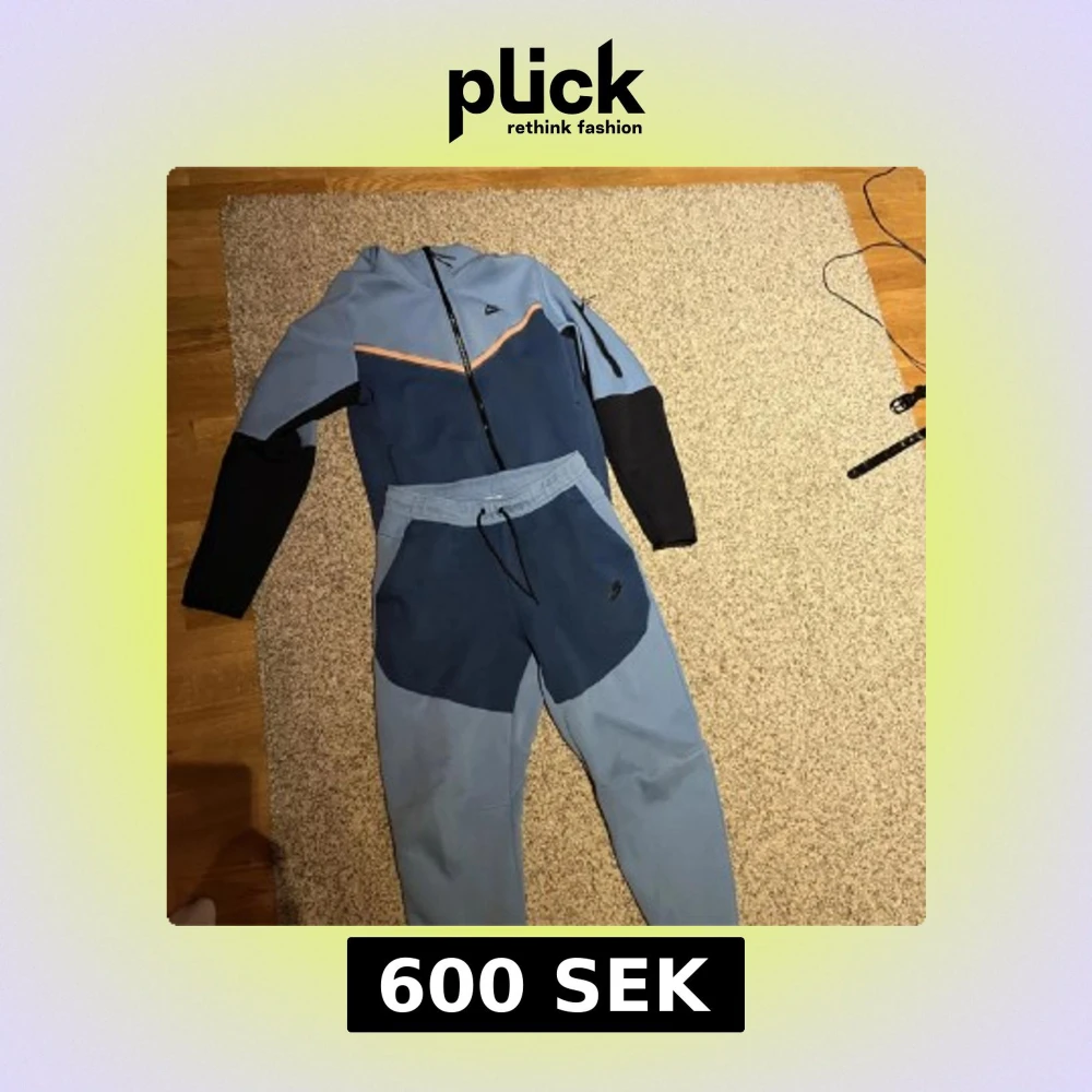 Nike hoodie i två nyanser av blått. Köptes för 2300 och är använd typ 2 gånger. Tröjan är i Small och byxorna i Medium.