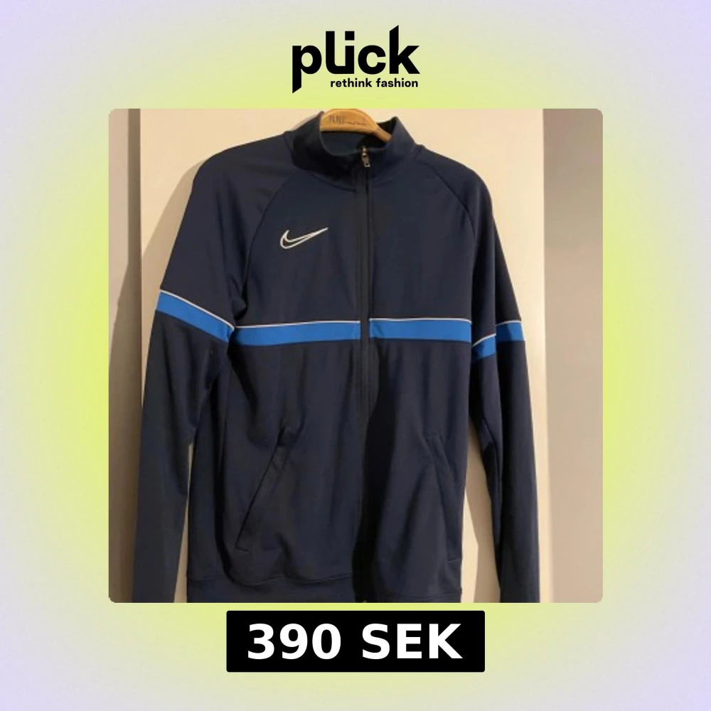 Säljer en mörkblå zip tröja från Nike med ljusblåa detaljer. Två stycken fickor med dragkedjor