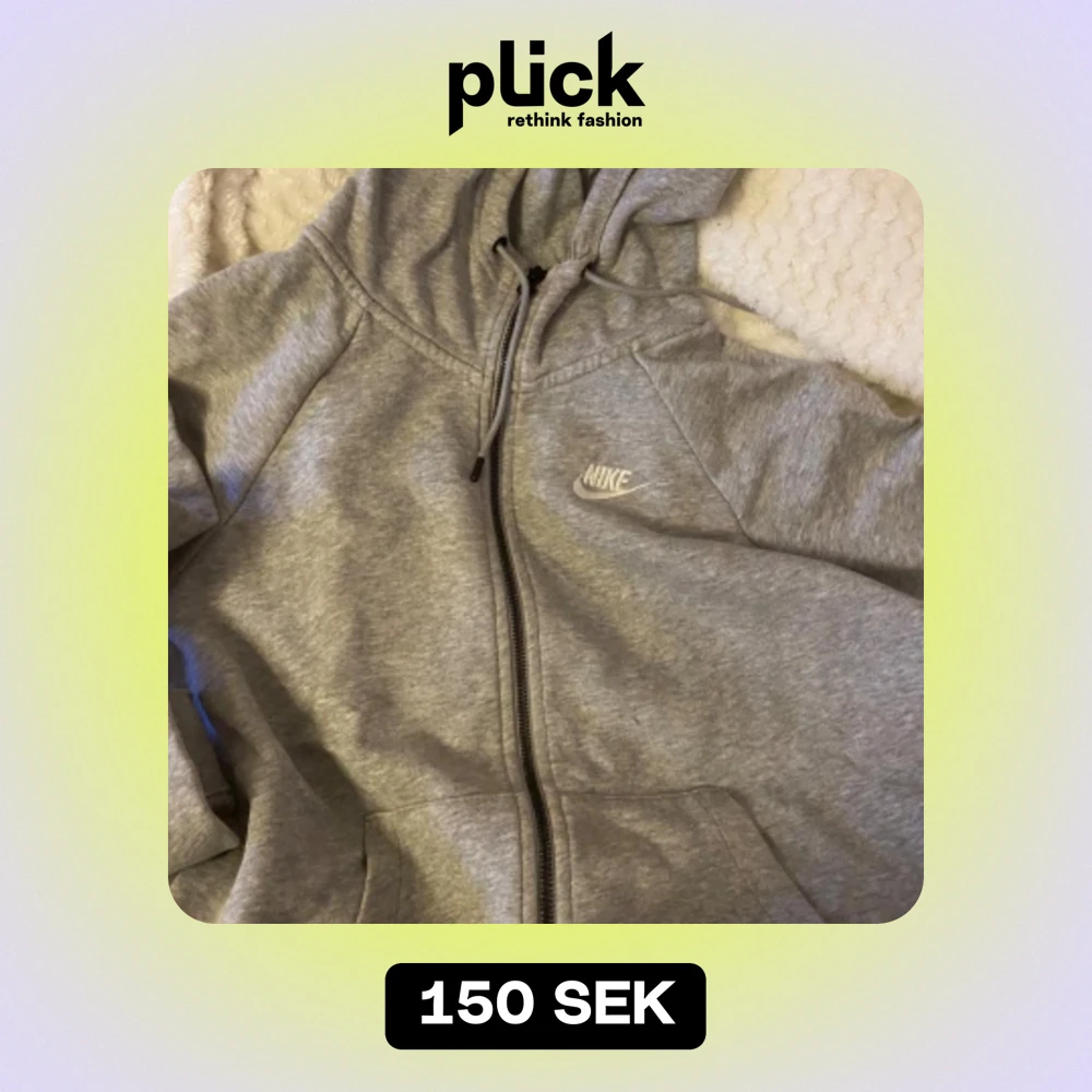Säljer en klassisk grå hoodie från Nike i storlek S. Den har en dragkedja framtill och en justerbar huva med snören. Perfekt för en avslappnad stil eller träning. Superbekväm och lätt att matcha med allt!