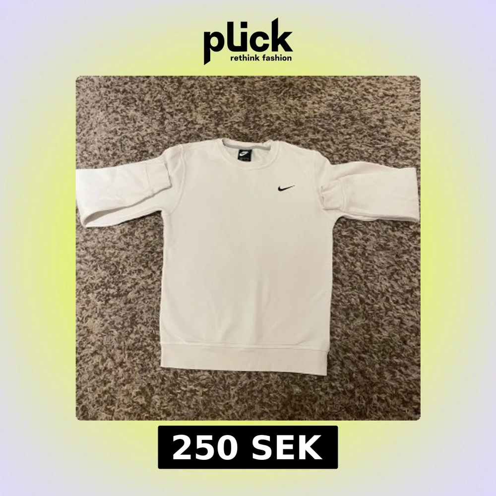 Säljer en stilren vit sweatshirt från Nike med klassisk svart logga på bröstet. Tröjan har rund hals och långa ärmar, perfekt för chill dagar eller när du vill ha en clean look. Materialet är mjukt och skönt, passar dig som gillar enkel och sportig stil.