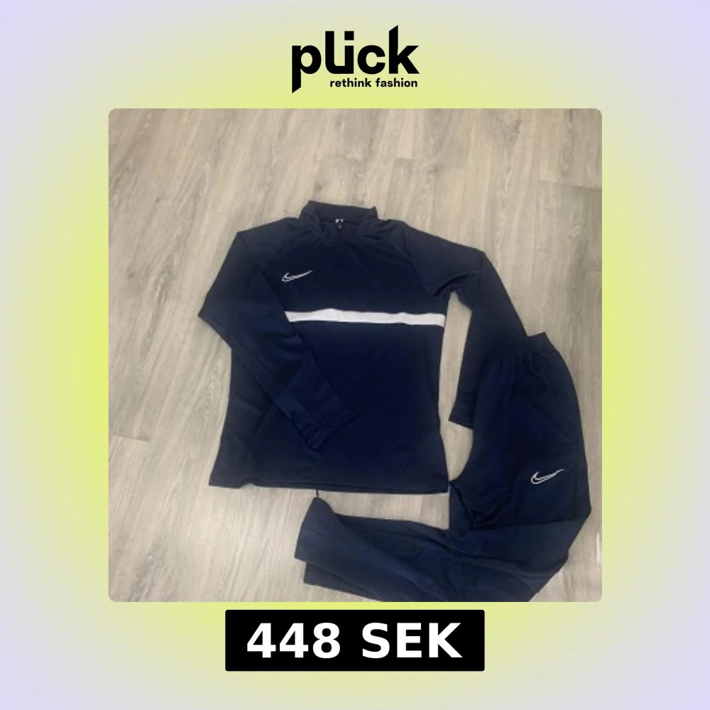 Snygg marinblå träningströja från Nike med vit rand över bröstet och broderad logga. Tröjan har lång ärm, half zip och är gjord i mjukt syntetmaterial som andas. Perfekt för fotboll eller annan träning.