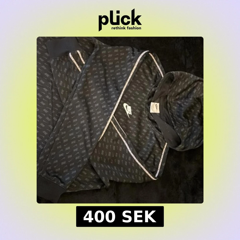Svart hoodie från Nike med all-over logomönster och vita detaljer längs axlarna. Tröjan har huva, lång ärm och en stor ficka framtill. Materialet är mjukt och känns sportigt, perfekt för chill eller träning. Nike-loggan är tryckt i vitt på bröstet.