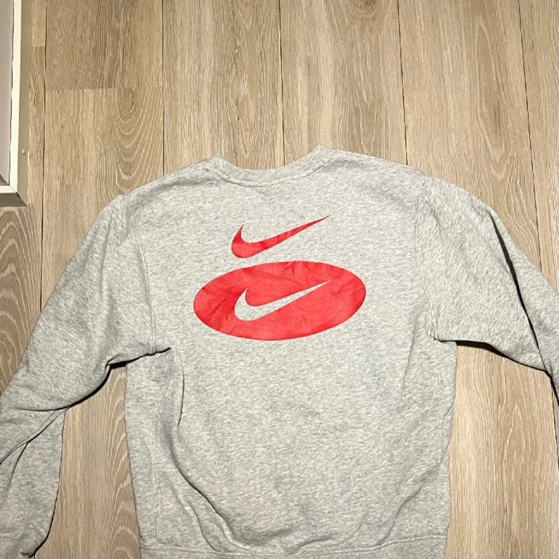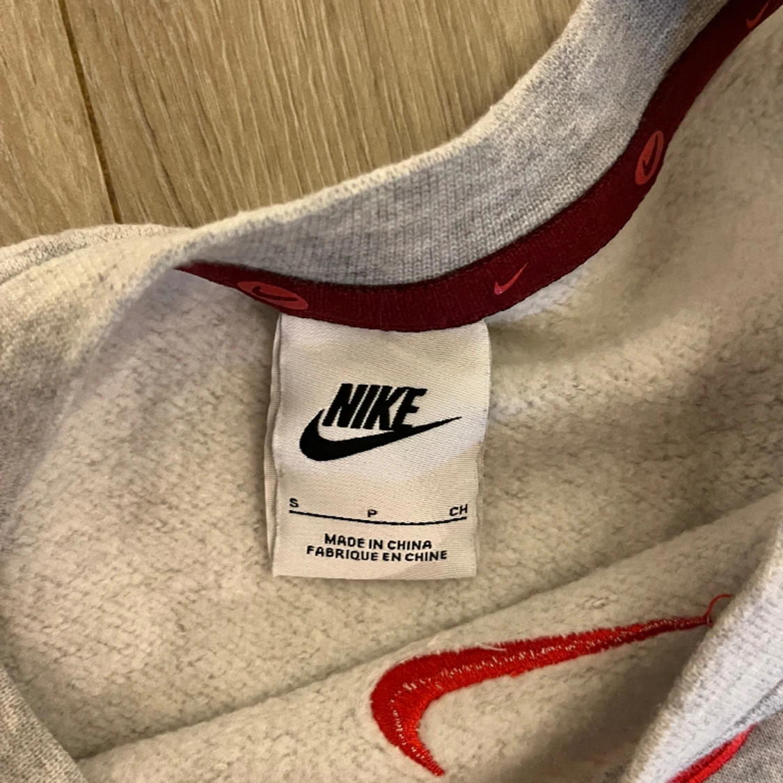 Tröjan är i mycket bra skick och är använd fåtal gånger. Den är grå melerad med röda detaljer.