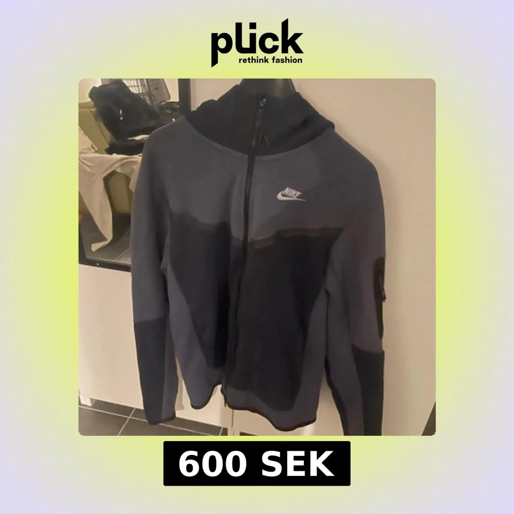 Nike tech hoodie i marinblått, den är i storlek S och knappt använd, fortfarande i nyskick, priset kan gå ner med snabb affär.