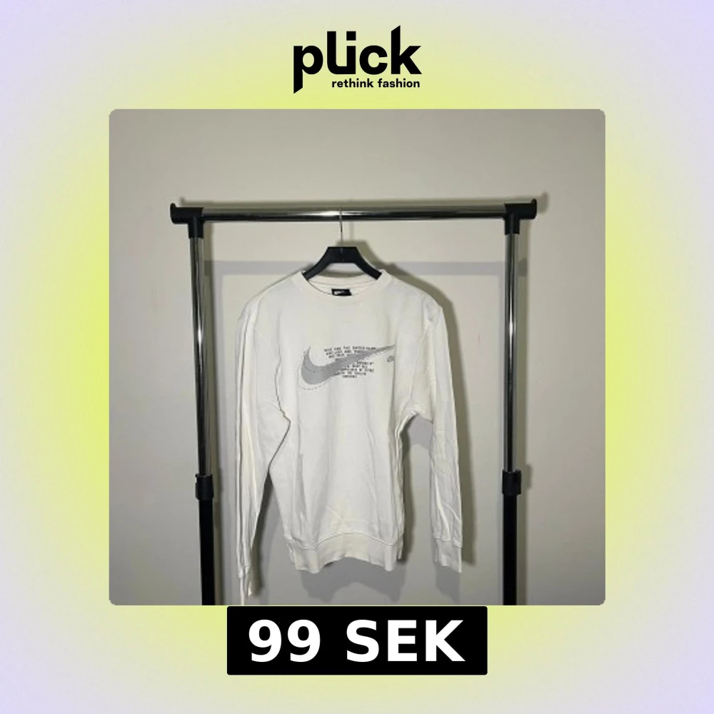 Säljer en stilren vit långärmad tröja från Nike med ett stort grått logotryck på framsidan. Perfekt för en avslappnad look. Tröjan är i storlek XS och har en klassisk passform.