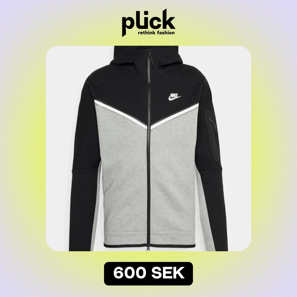 Säljer en snygg svart och grå hoodie från Nike med dragkedja framtill. Den har en cool design med vita detaljer och en praktisk ficka på ärmen. Perfekt för både träning och vardag. Stor Nike-logga på bröstet för extra stilpoäng!