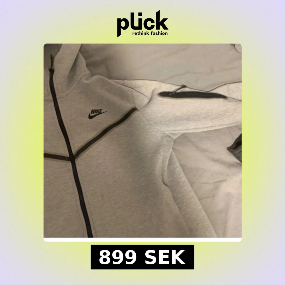 Snygg ljusgrå hoodie från Nike med svarta dragkedjor och detaljer. Tröjan har huva, hel dragkedja framtill och en extra ficka med dragkedja på ärmen. Perfekt för chill eller träning, klassisk Nike-logga på bröstet.