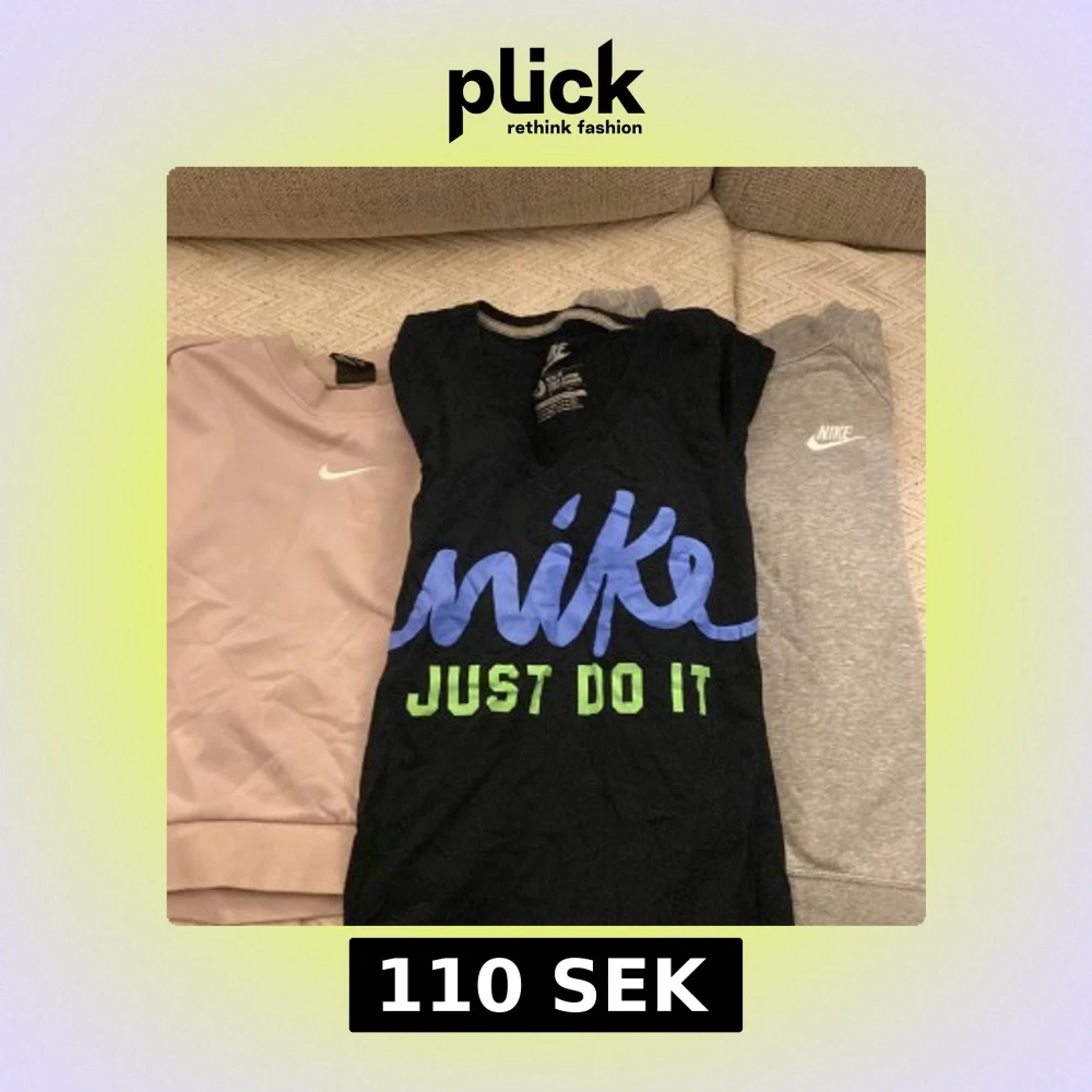 Säljer dessa Nike övertröjor och Nike T-shirt, alla tröjorna är i storlek S, den beiga tröjan har en öppen rygg. bundlepris: 110kr, övertröjor 50kr/st, T-shirt 30kr💕